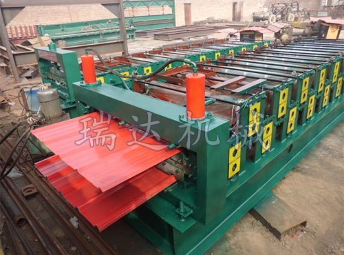 840/900雙層彩鋼壓瓦機由放料、成型、后成型切割組成,所生產的產品外觀平整美麗、漆紋均勻、、,還具有操作、維護、保養以及機械的調試、模具 換容易等優點。